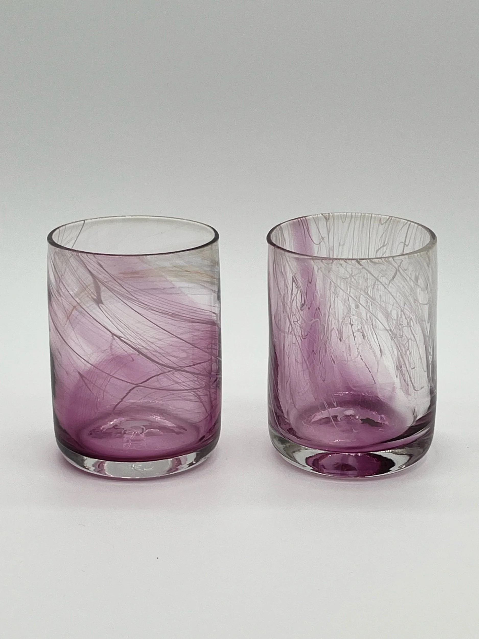 Shop › Purple/white chaos cane glasses Image 1 of 1 Purple/white chaos cane glasses $75.00 4 1/2”x 3”. Holds 12 oz. Add To Cart Added! 4 1/2”x 3”. Holds 12 oz.