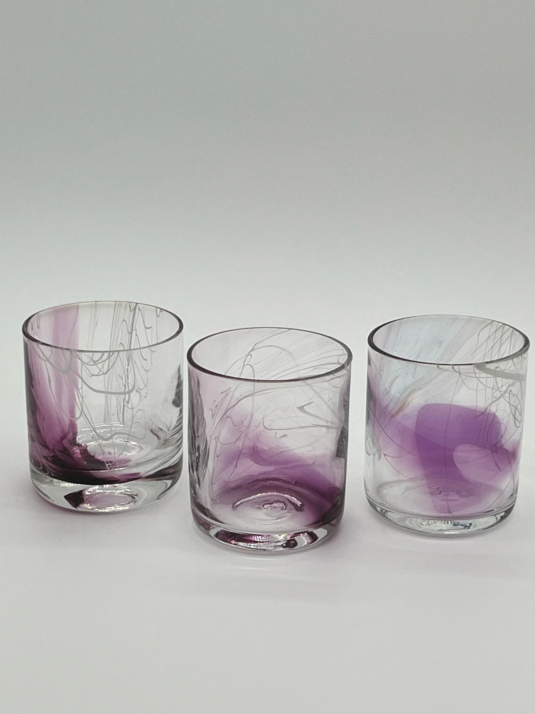 Shop › Purple/white chaos cane glasses Image 1 of 1 Purple/white chaos cane glasses $75.00 3 1/2”x 3”. Holds 9 oz. Add To Cart Added! 3 1/2”x 3”. Holds 9 oz.