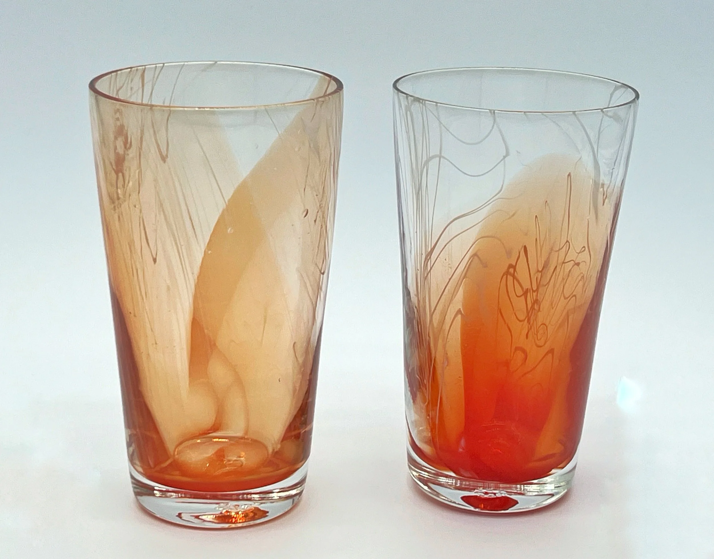 Shop › Red/white chaos cane pint glasses Image 1 of 1 Red/white chaos cane pint glasses $75.00 6”x2/12”. 16 oz capacity. Add To Cart Added! 6”x2/12”. 16 oz capacity.